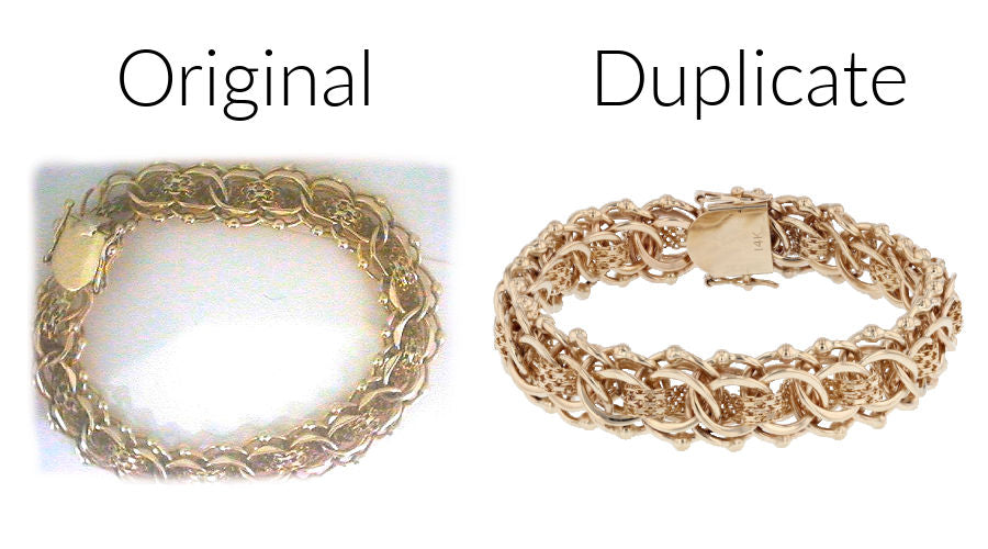 The price to duplicate a sterling silver bracelet begins at $1,500, although they are usually more. For gold bracelets, with no diamonds or gemstones, the price begins at $4,000. For gold or platinum bracelets with diamonds or gemstones the price varies and can often be over $10,000.