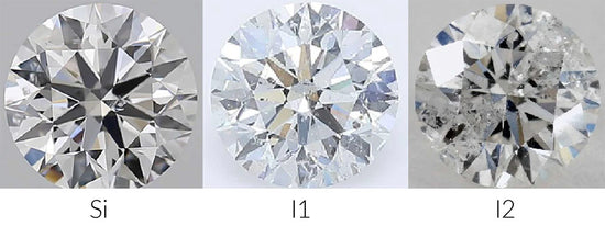 Inclusions are visible without magnification in I1 to I3 diamonds. There’s a wide variation in I1’s, and many are very beautiful!