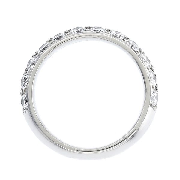 C99522This 2-row domed diamond band is comfort fit, and features our client's sentimental diamonds set pave style in our special heat treated platinum. We can create a similar band using your own sentimental stones, or provide brand new heart and arrows diamonds for extra sparkle! How many rows of diamonds would you like to see on your finger?