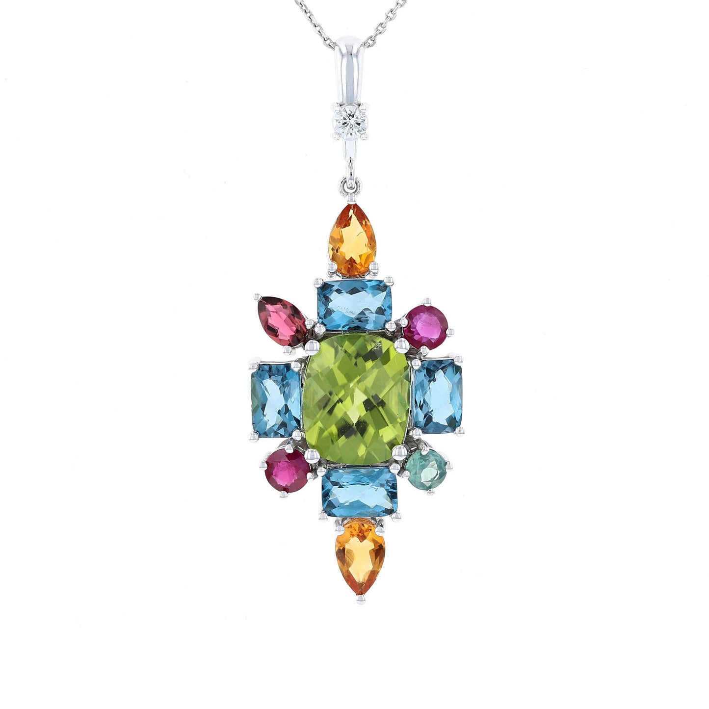 C112555Birthstones of family members were used to create this stunning mother's necklace in white gold, all with heirloom stones. Let us help you customize your family jewelry!