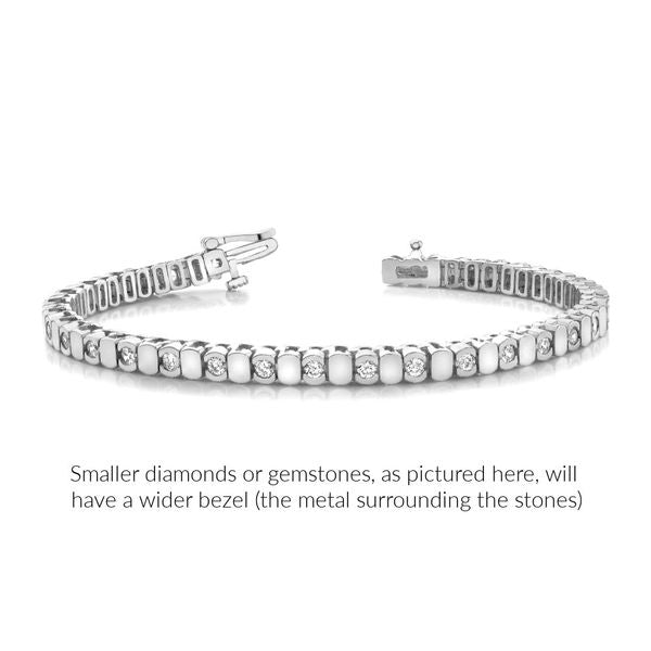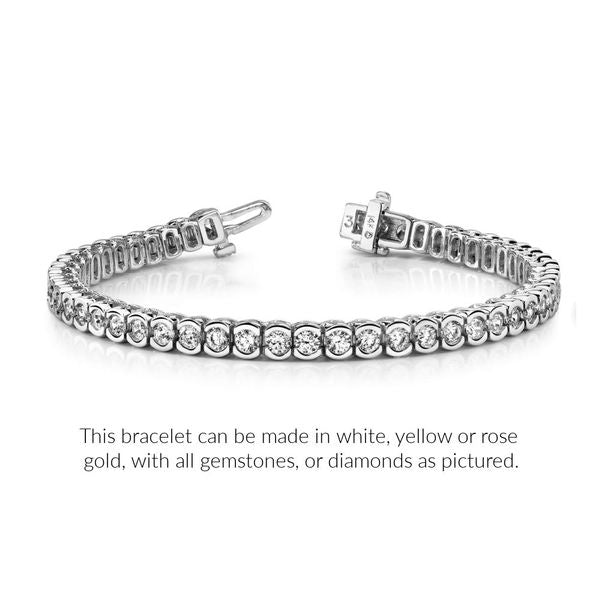 64901 RepairA modern twist on a timeless classic, this bracelet can be set with your favorite gems. Shown here with AAA blue sapphires set in yellow gold, you might consider rubies set in rose gold, or diamonds and emerald set in white gold. How would you make this stunning piece your own?