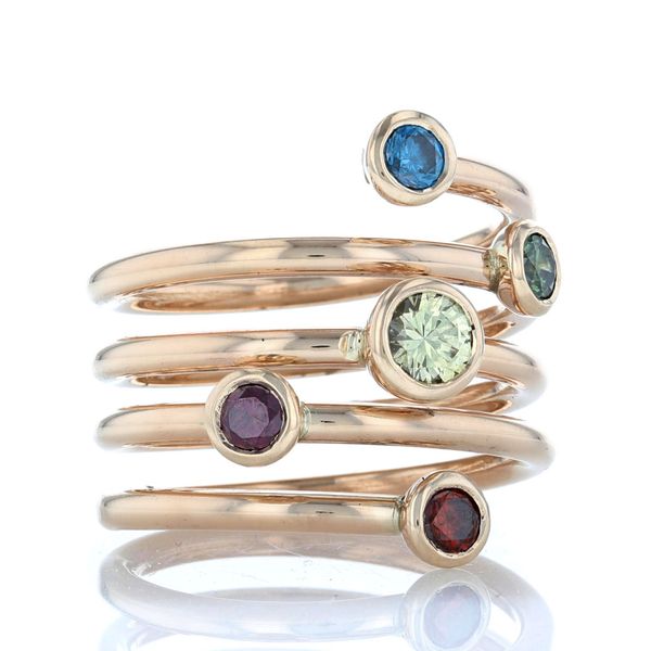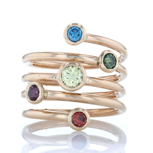 C101658This 14kt yellow gold family ring features colored diamond birthstones set in a fun and unique "coil" design that wraps around the finger. Make it yours by setting the birthstones of everyone in the family, or set it with clear white diamonds for a beautiful statement ring.