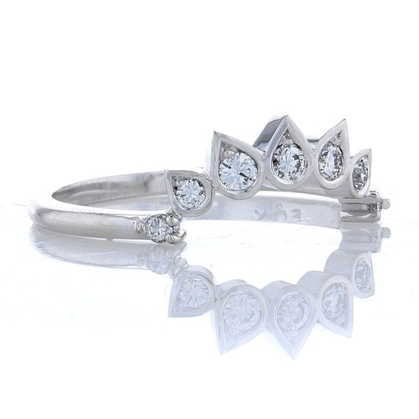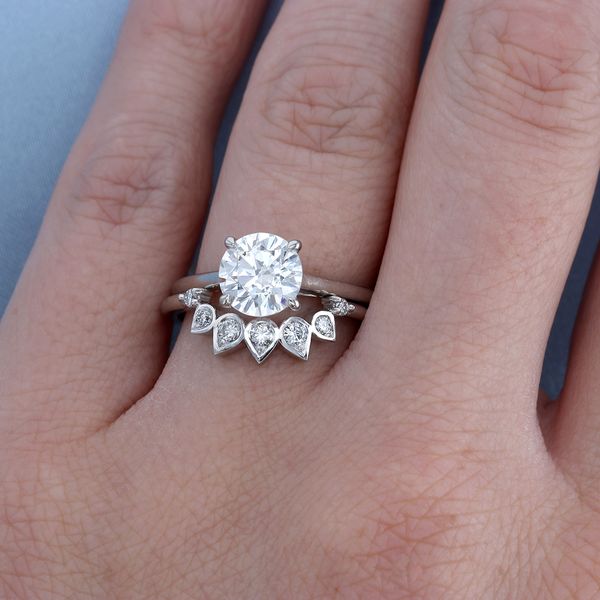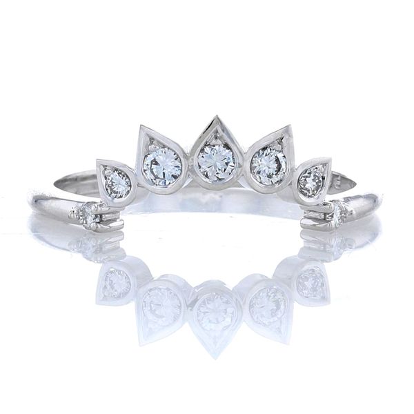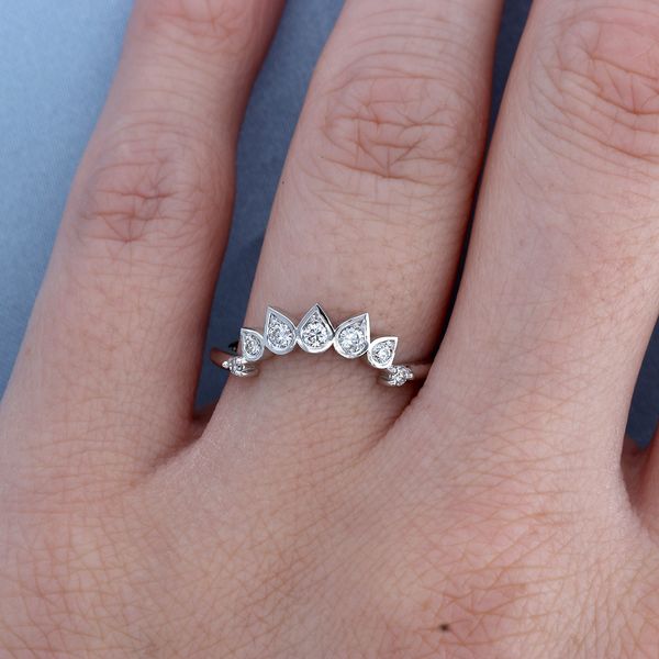 C105907Our client had sentimental antique diamonds, so we created a custom contour wedding band and set her special single cuts into pear shapes.