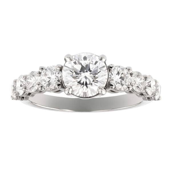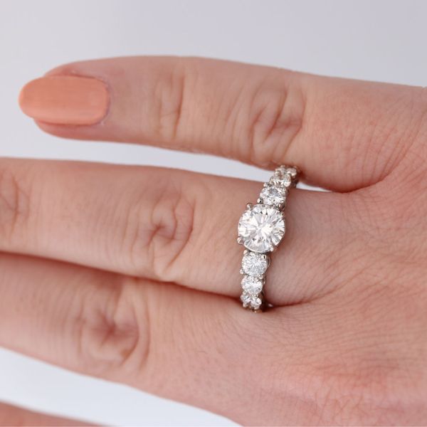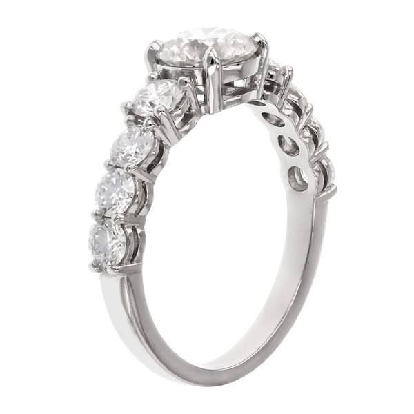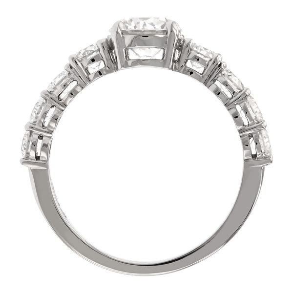 86516As if the incredible center diamond isn't dazzling enough, this ring features 4 sizeable diamonds on either side of the band. A ring that truly glitters from every angle!