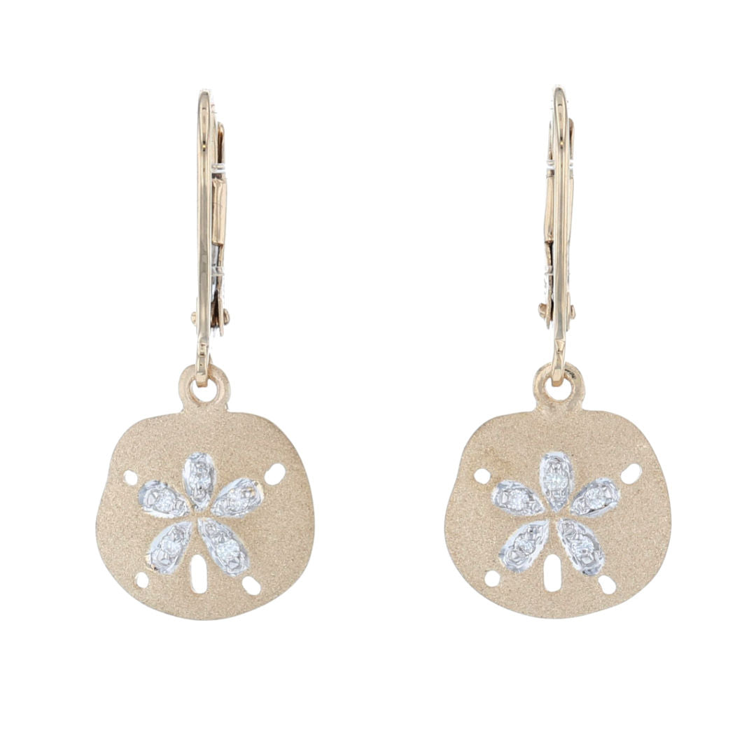 14k Yellow Gold 0.05 carat total weight Diamond 10 mm Sand Dollar Leverback Dangle Earrings by Denny Wong.