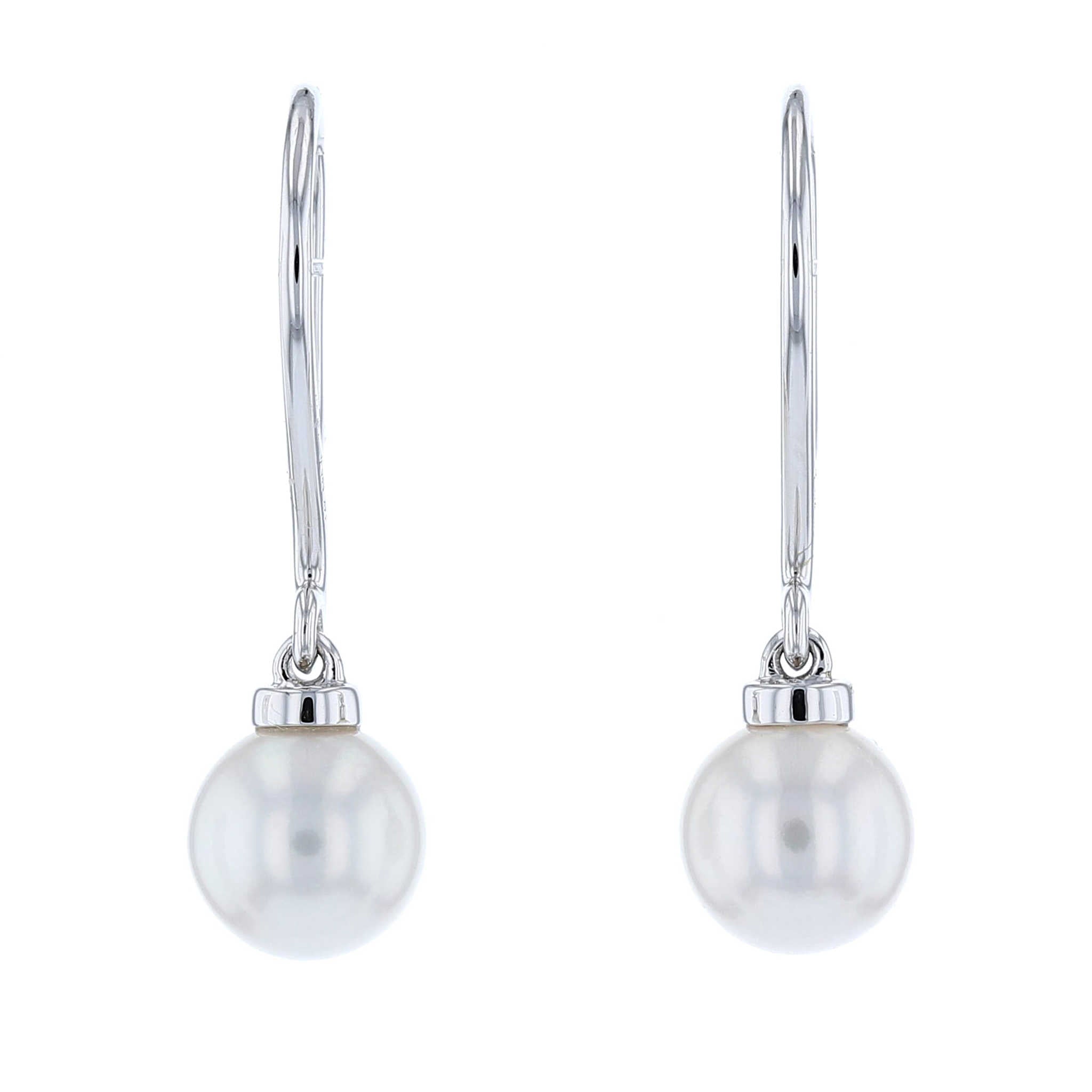 14k White Gold 6.2 - 6.3 mm Freshwater Pearl Dangle French Wire Earrings