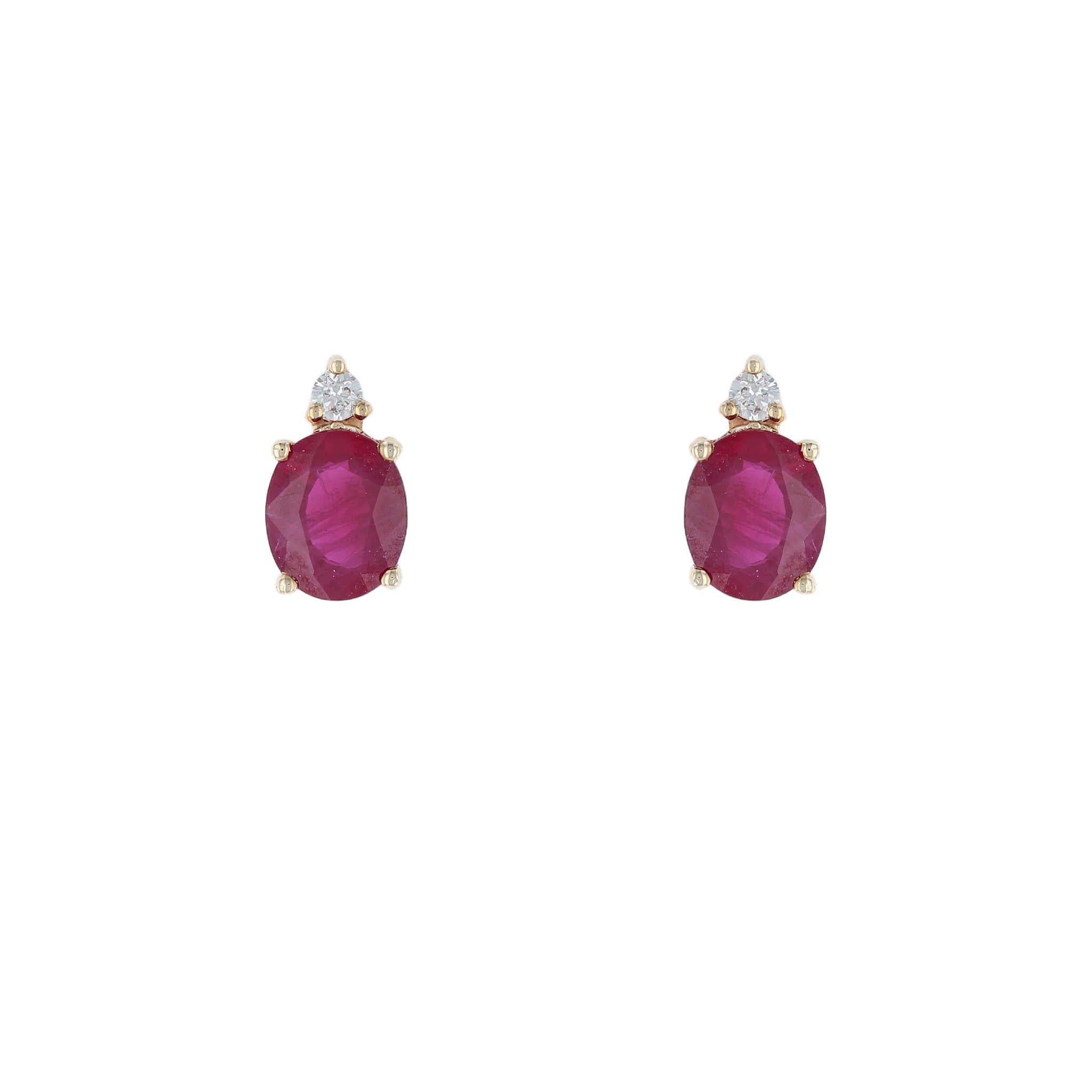 14k Yellow Gold 1.28 carat total weight (4 x 6 mm) Oval Ruby & 0.04 carat total weight Diamond Oval Stud Earrings.