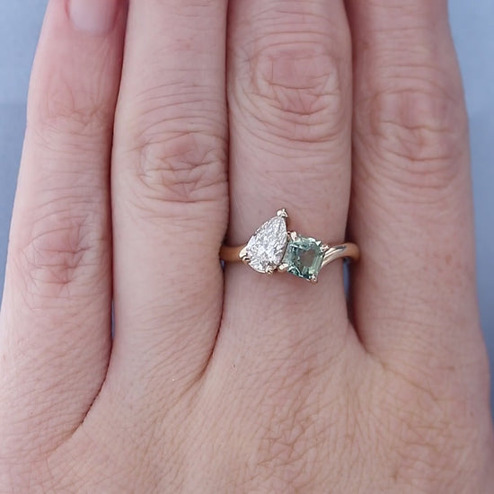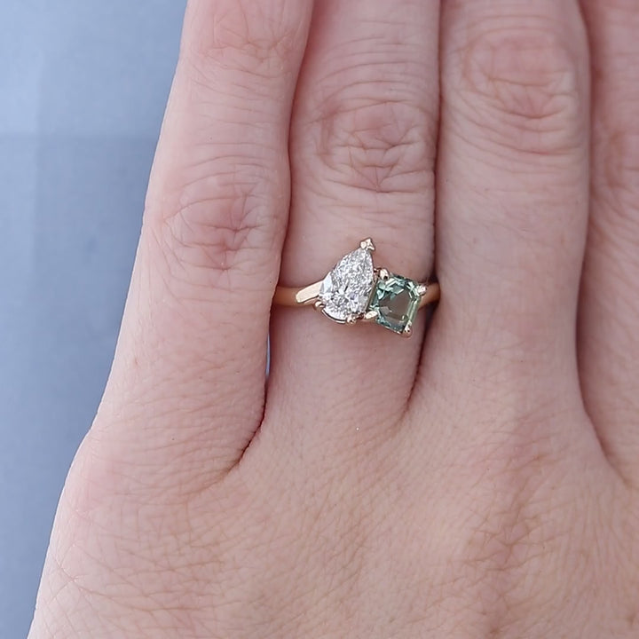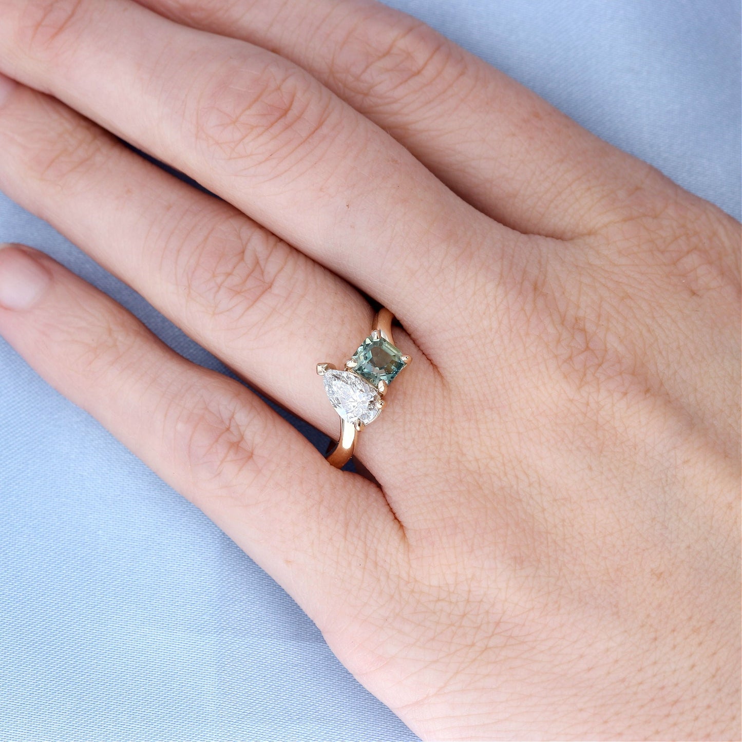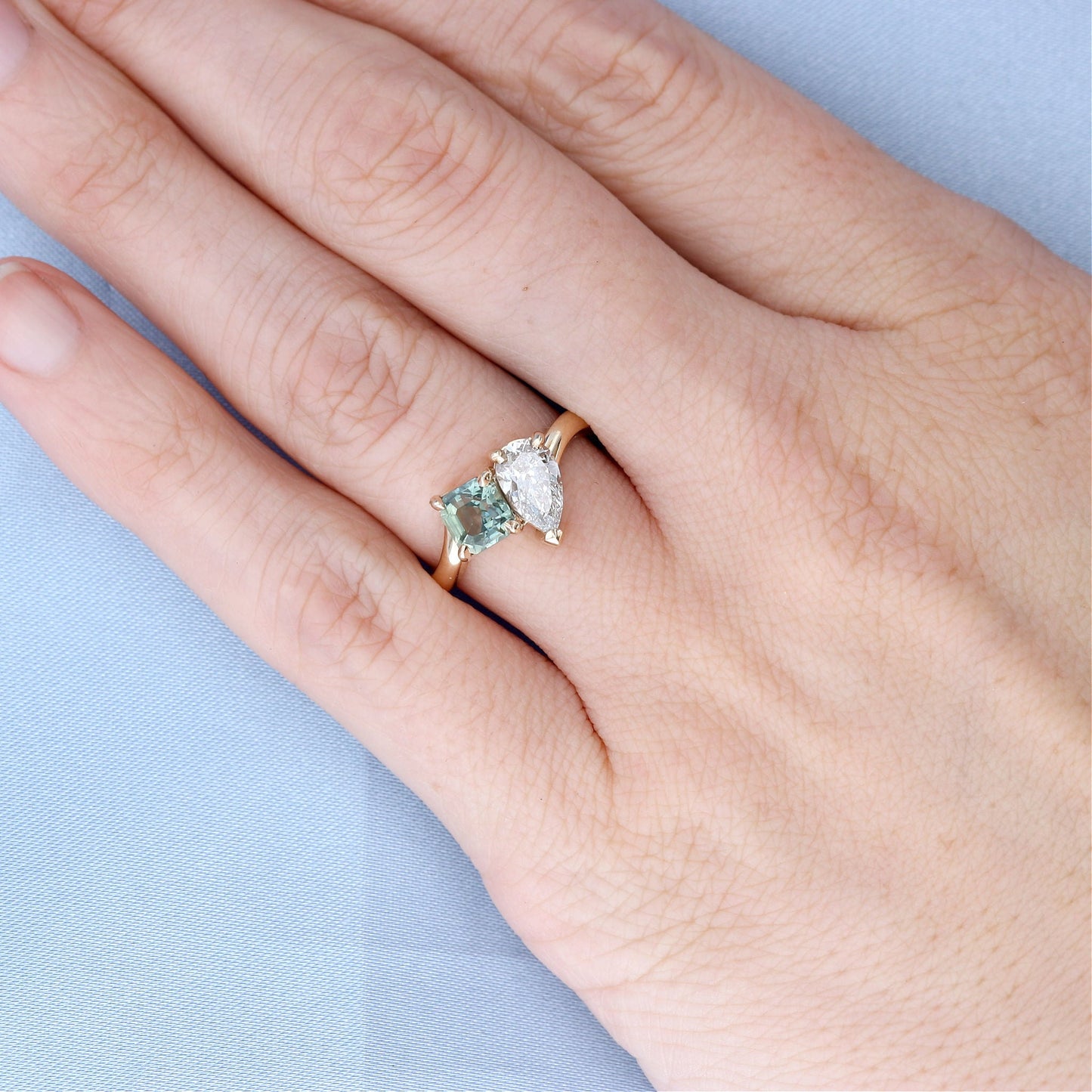 Pear Diamond & Green Sapphire Toi Et Moi Engagement Ring