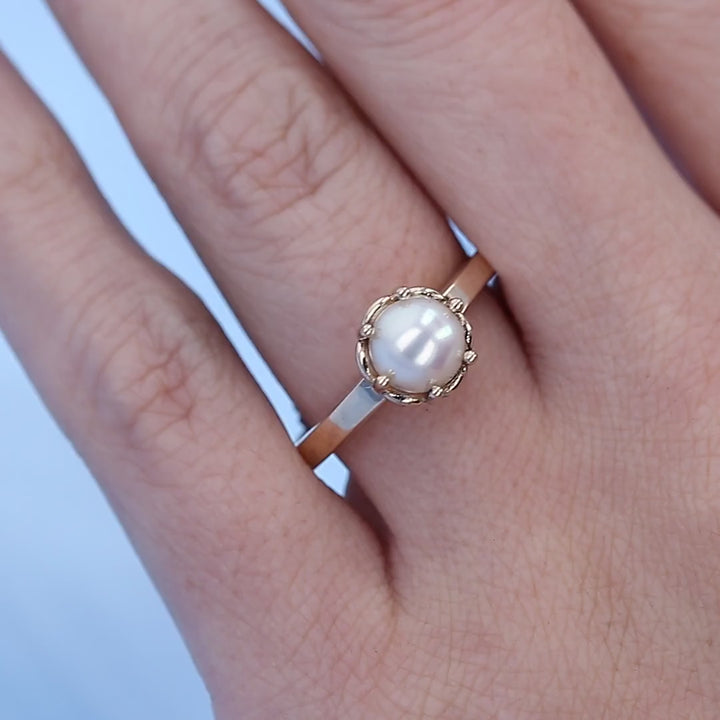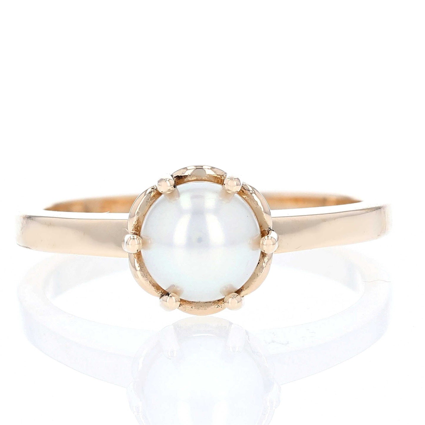 C107858A timeless look, this yellow gold solitaire ring cradles a pearl in a detailed floral crown with six prongs.