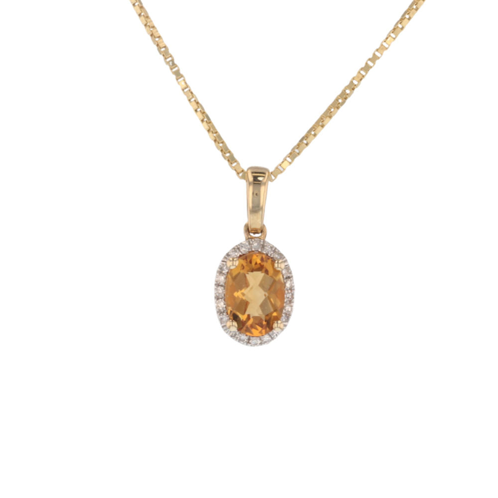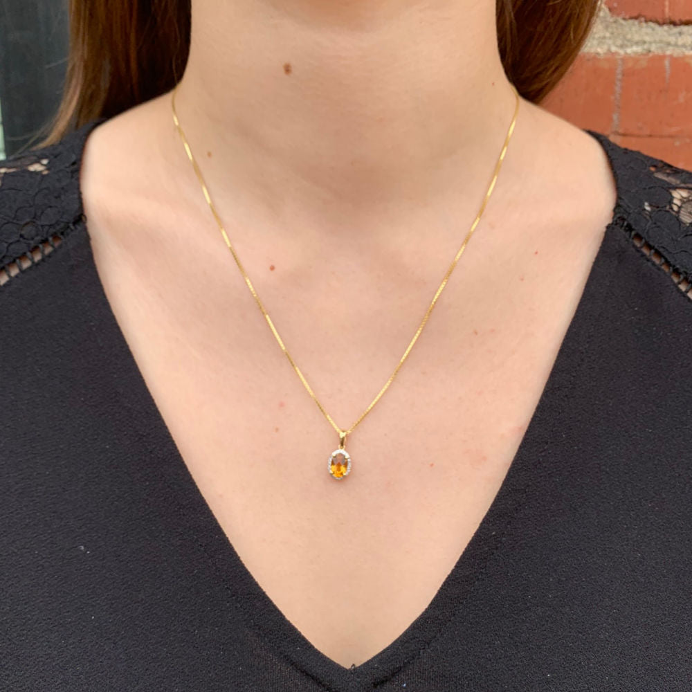 Petite Oval Citrine Diamond Halo Pendant