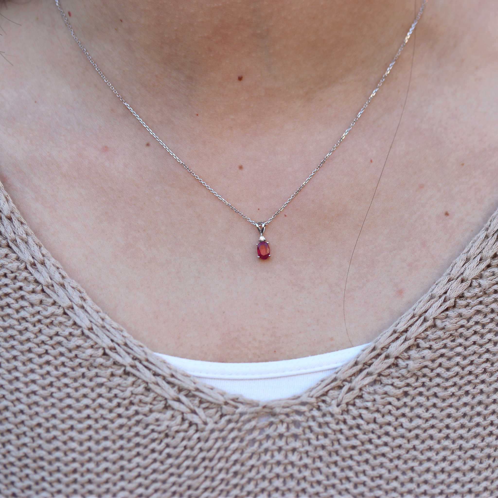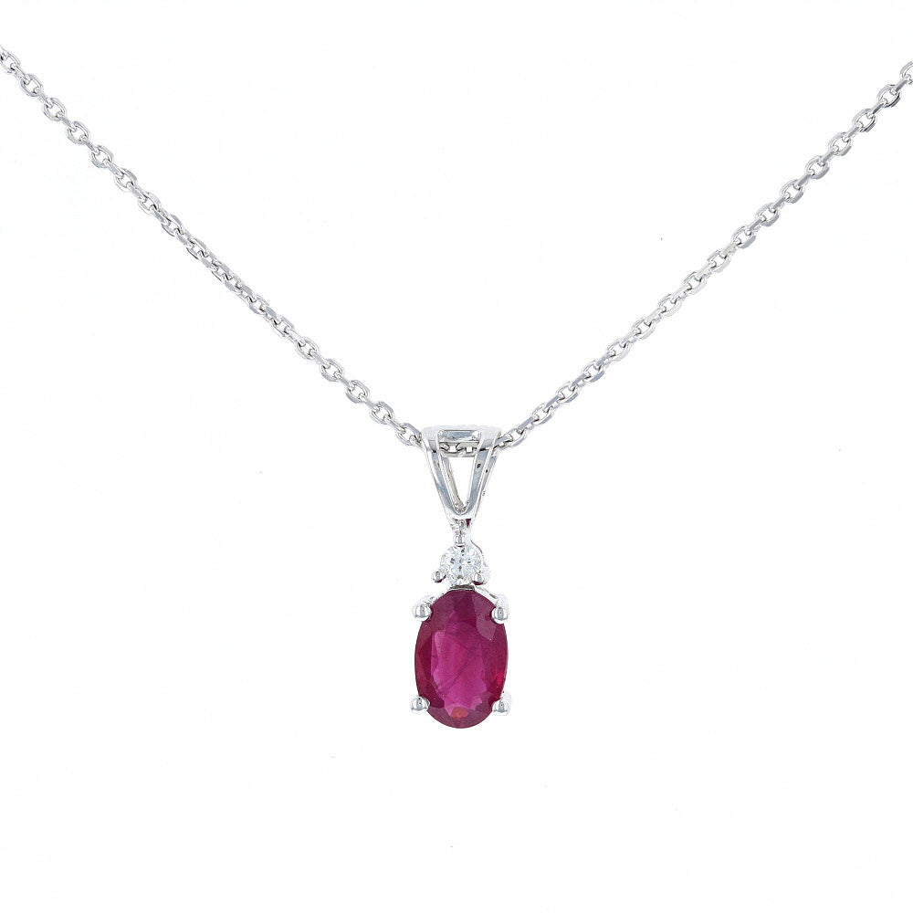 14k White Gold 0.64 carat total weight (4 x 6 mm) Oval Ruby & 0.02 carat total weight Diamond Pendant.