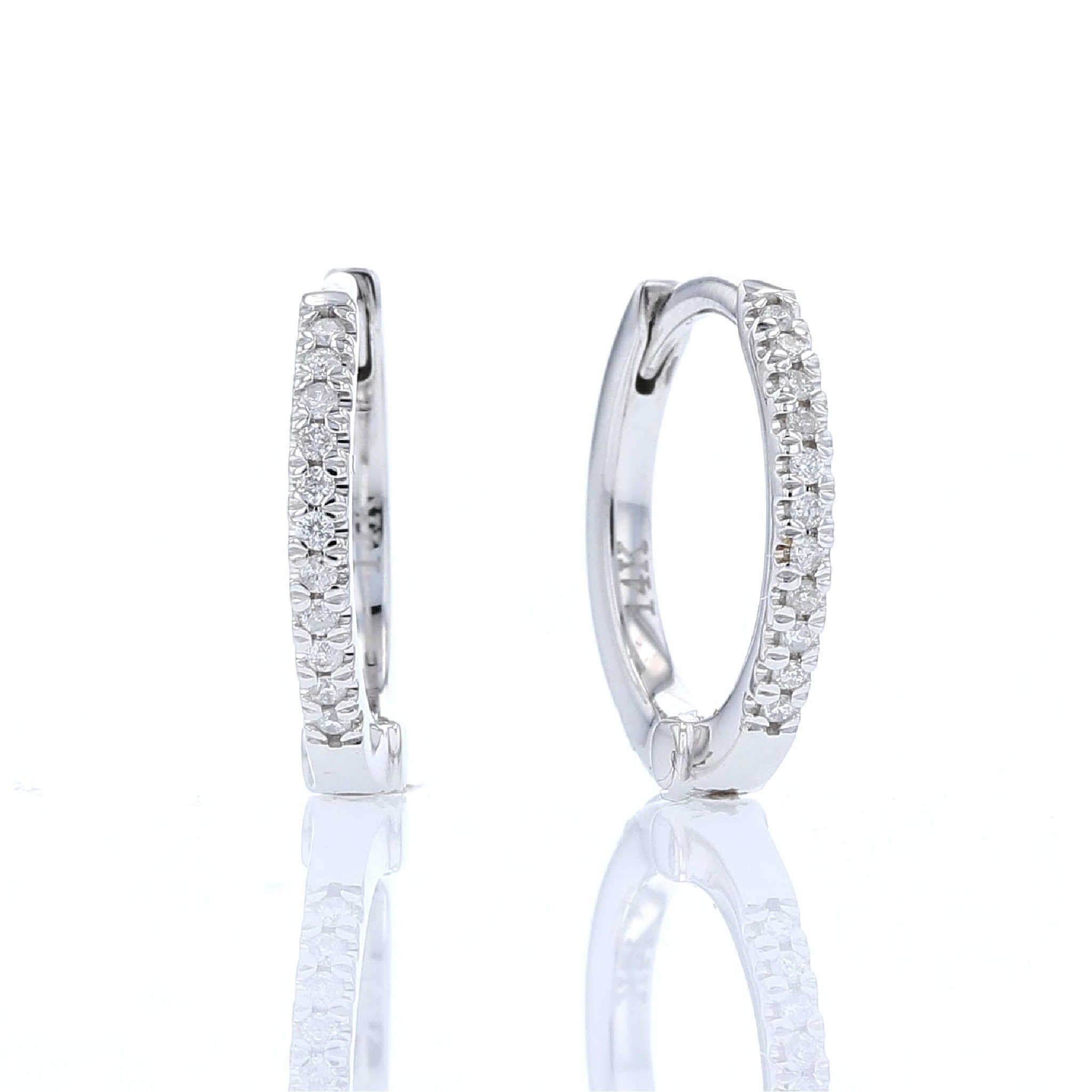 14k White Gold 0.10 carat total weight Diamond 12mm Huggie Hoop Earrings