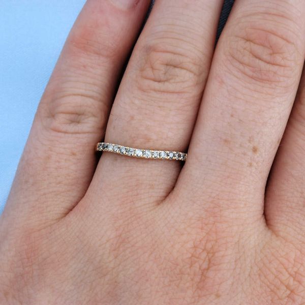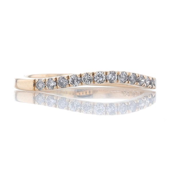 C104828This classic contour band style, meant to sit up against an engagement ring, is set with hand-selected salt-and-pepper diamonds.