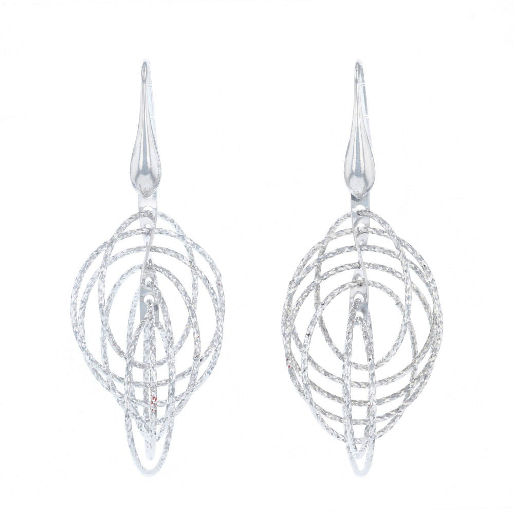 Sterling Silver 3-D Motion Diamond Cut Circle Dangle Earrings on Wire.