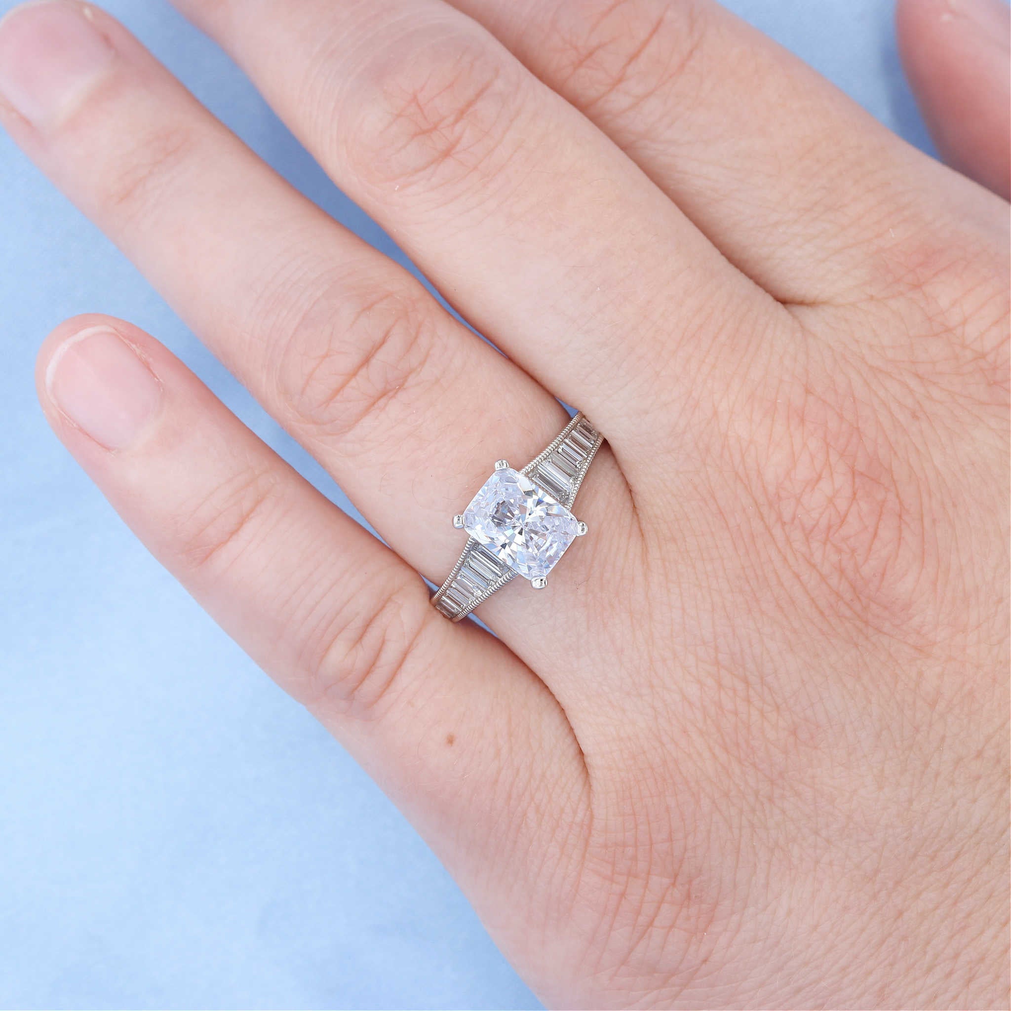 · 8 x 6 mm radiant center stone; other sizes available upon request