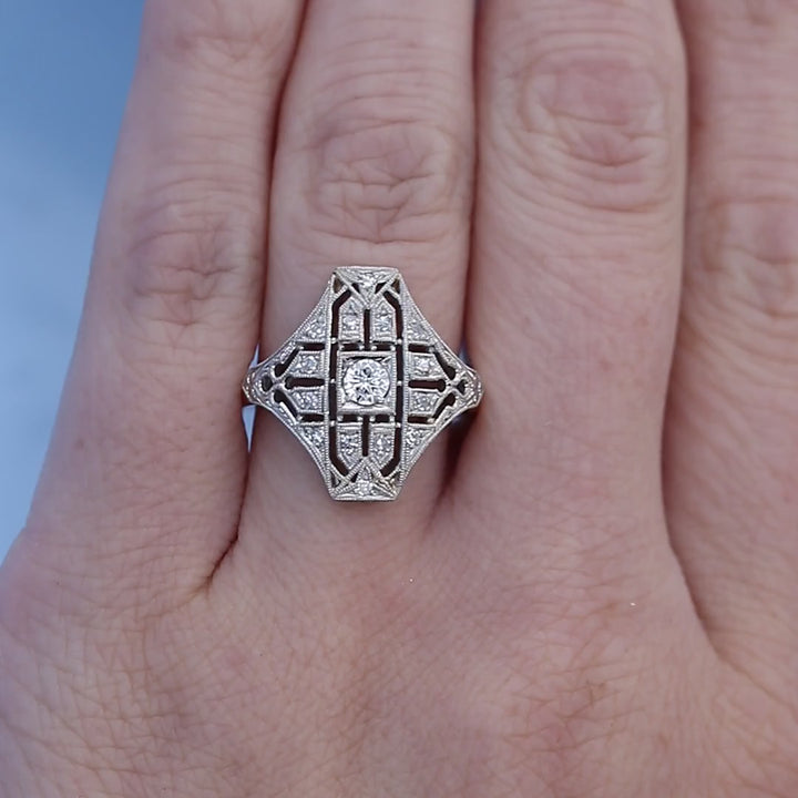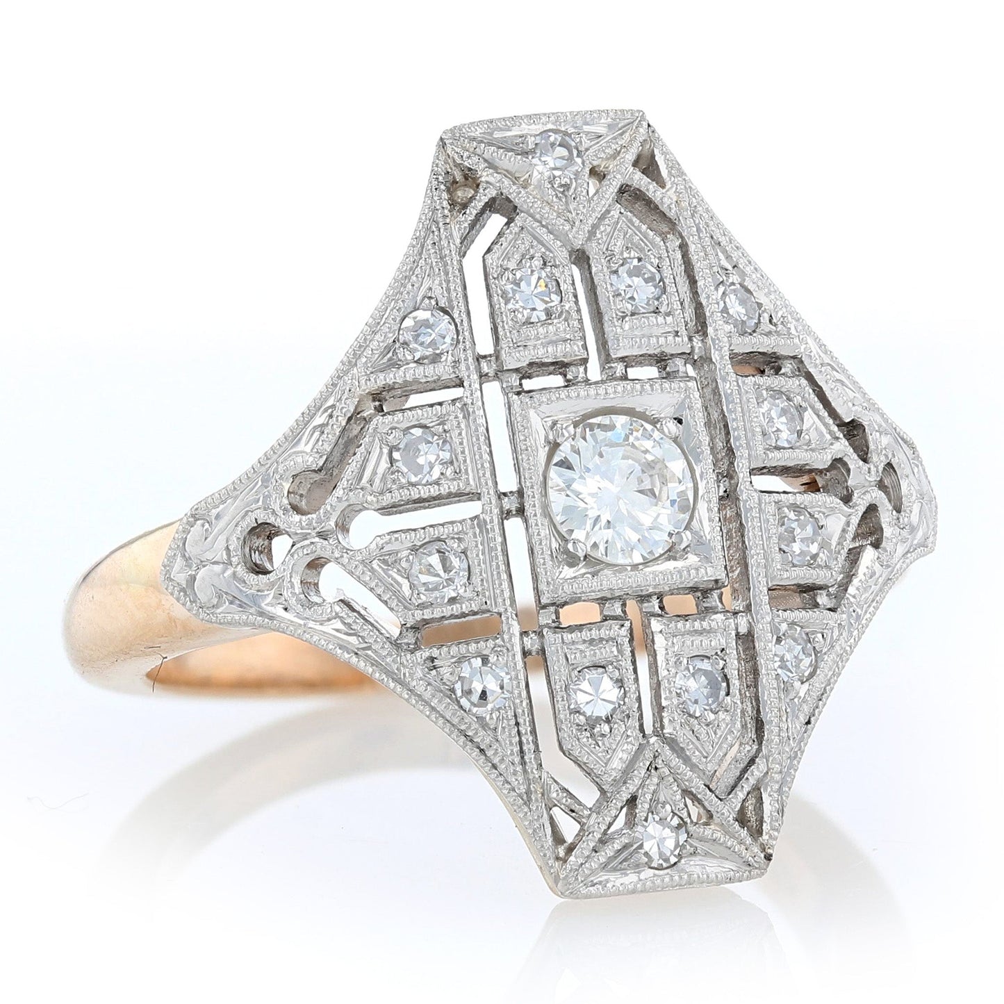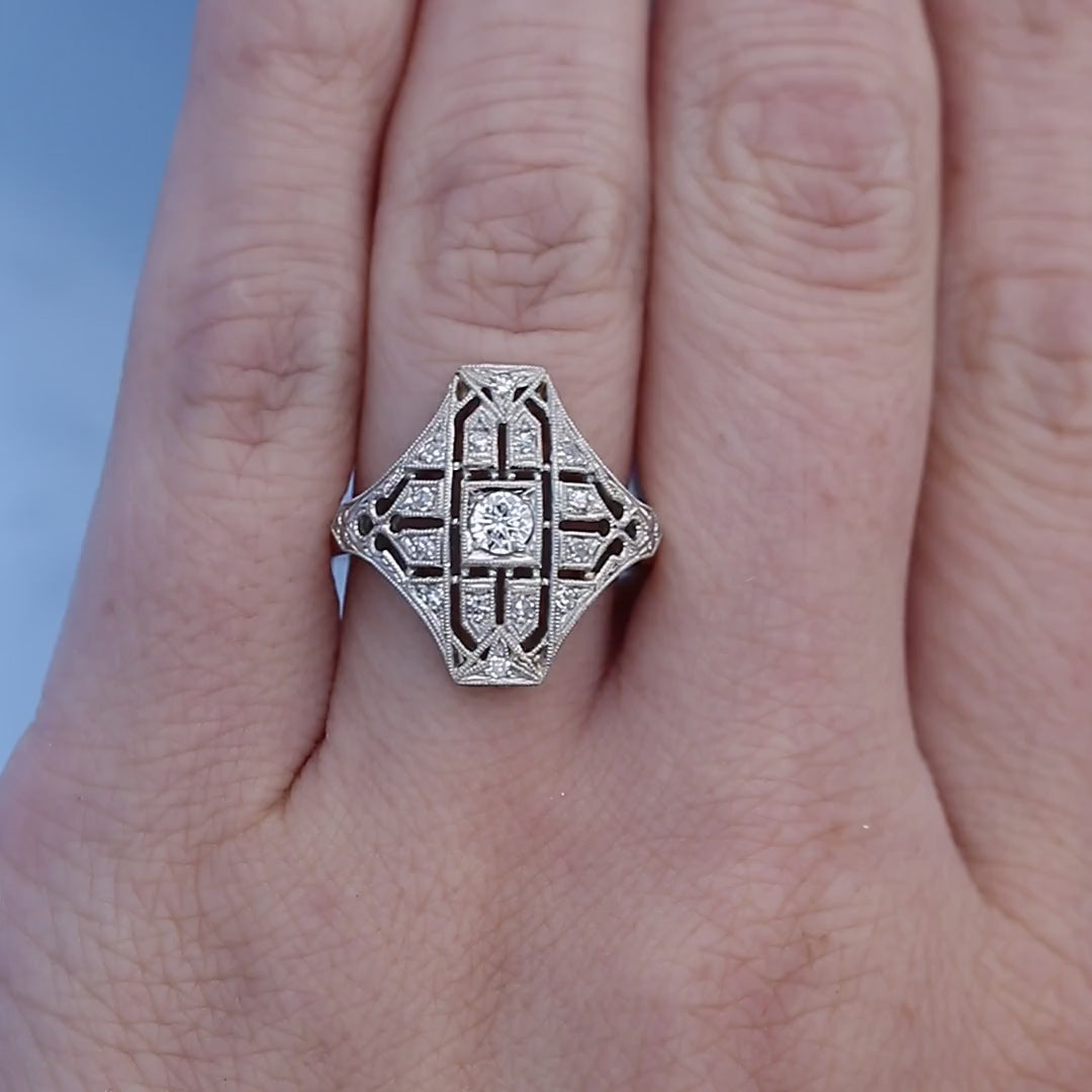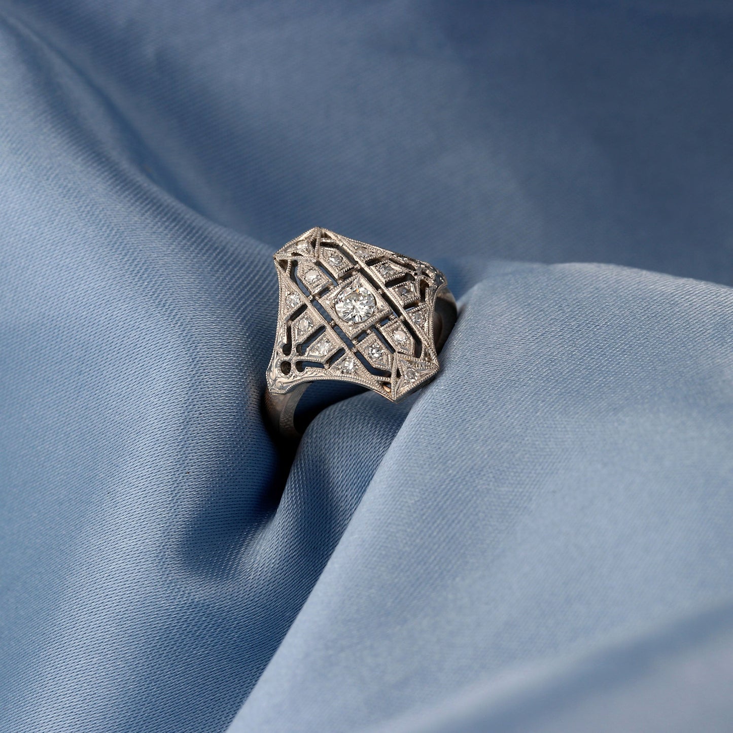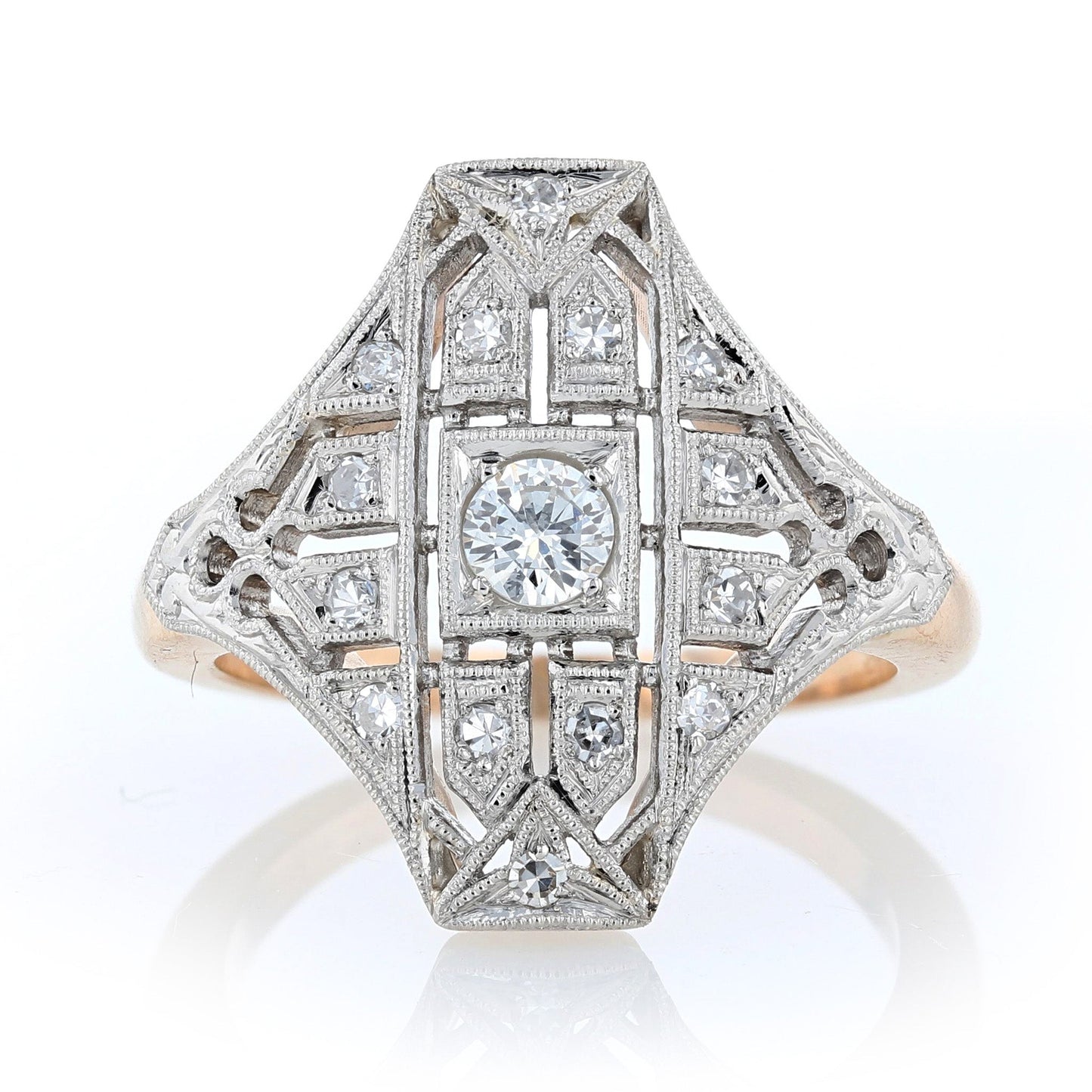 Two Tone Geometric Art Deco Diamond Engagement Ring