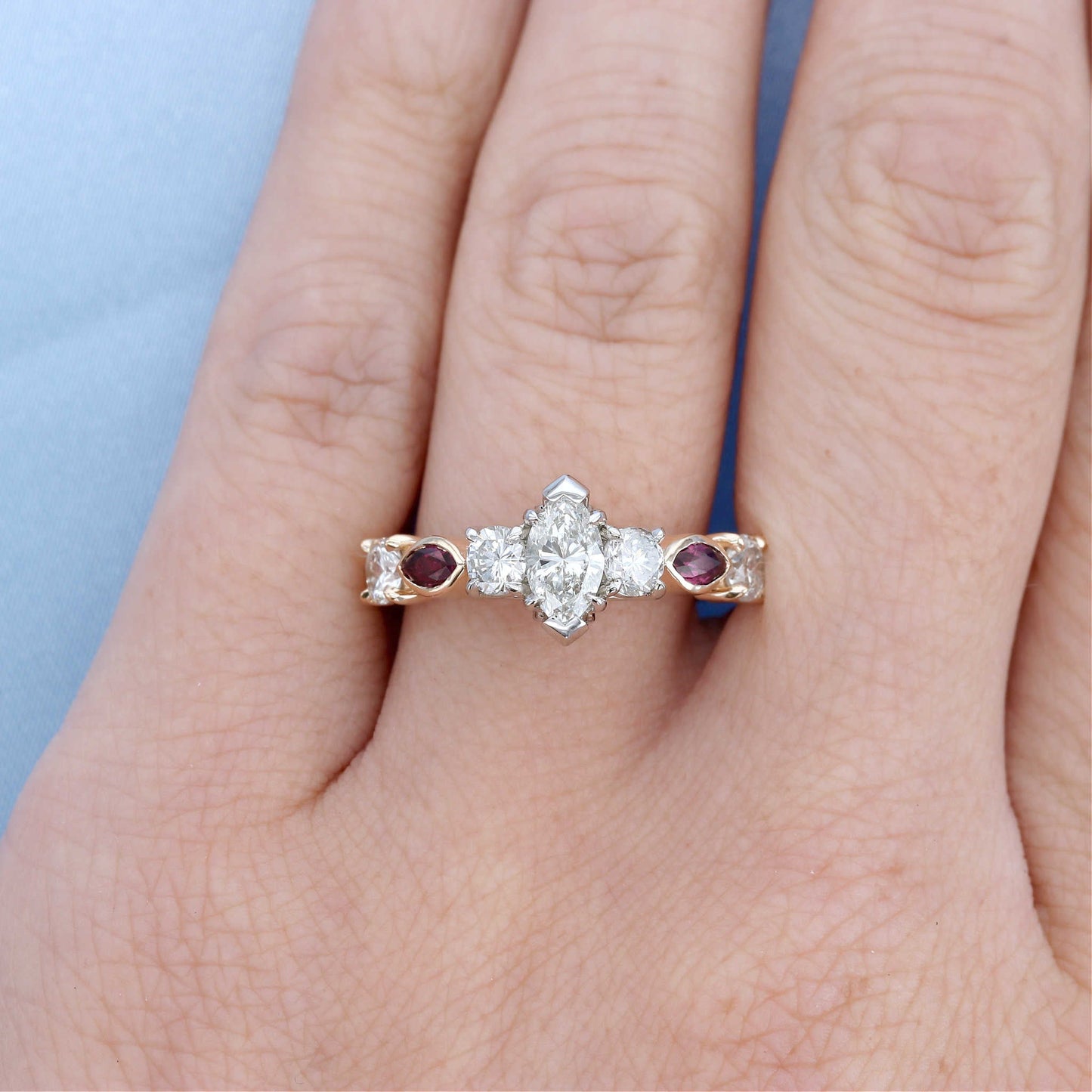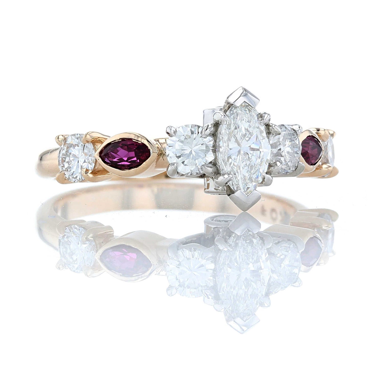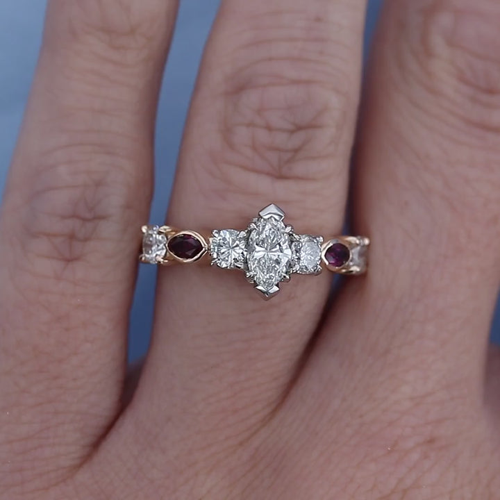 Two Tone Ruby & Marquise Diamond Engagement Ring
