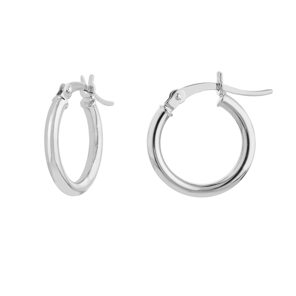 14k White Gold 2 x 15 mm Round Tube Polished Hoop Earrings.