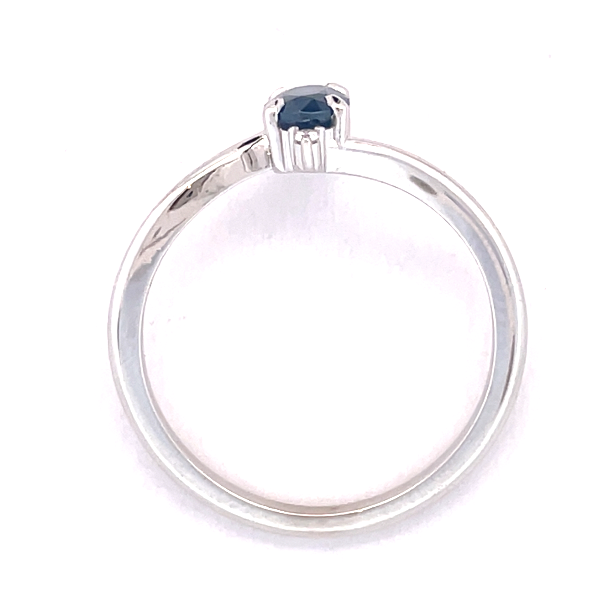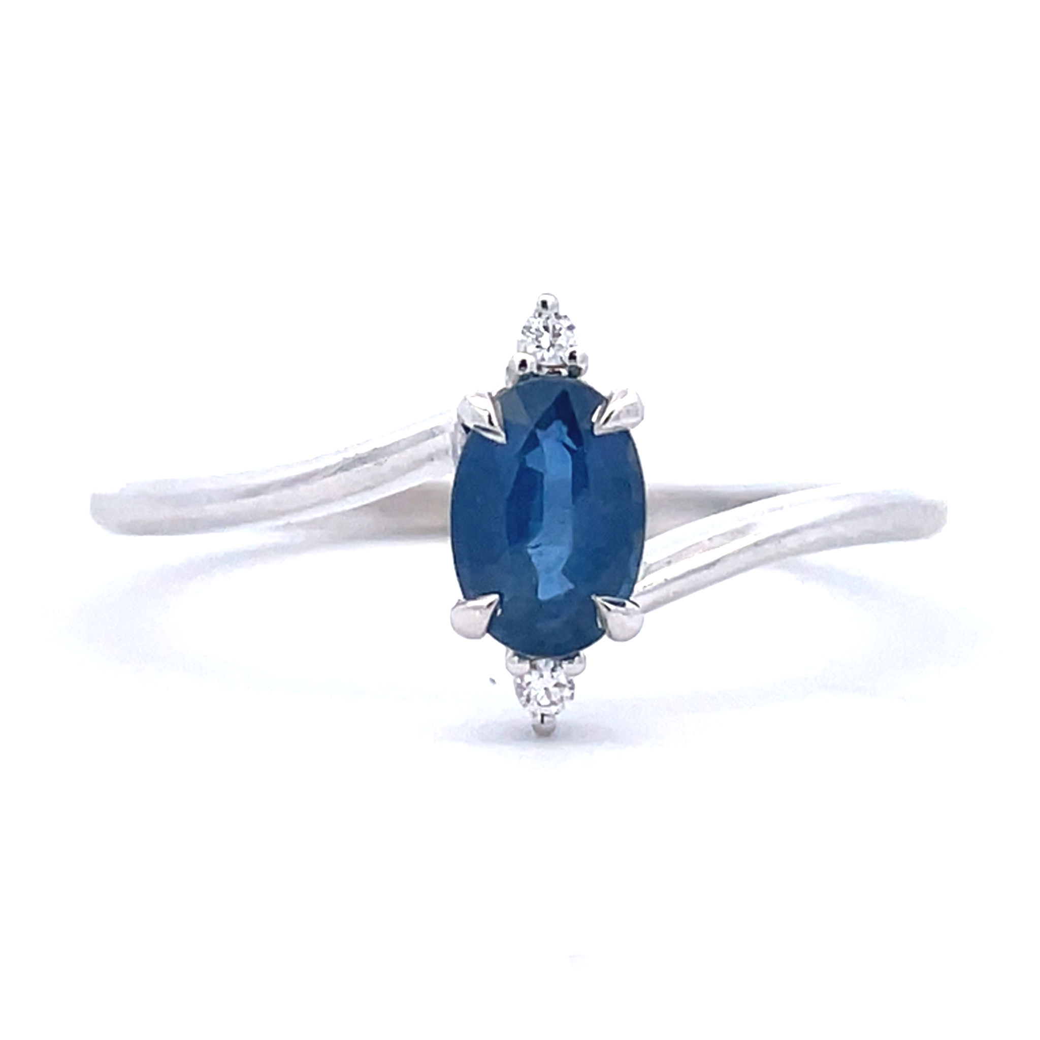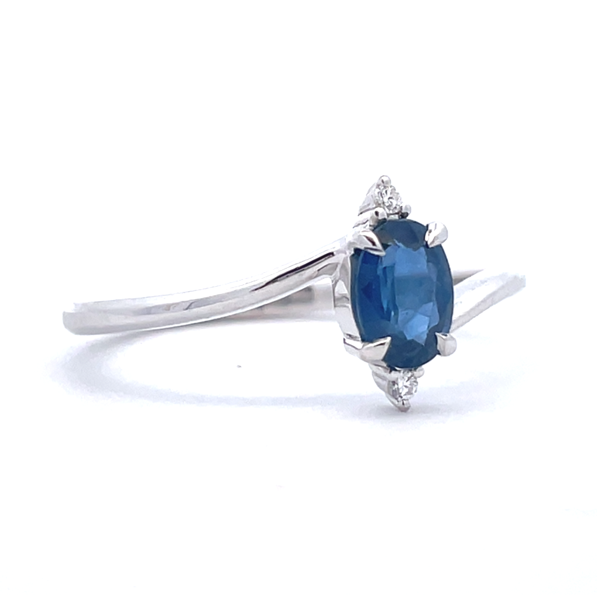 14k White Gold 6 x 4 mm Sapphire & 0.02ctw Diamond Oval Bypass Ring, Size 7. Diamonds are 1.3mm, Hearts and Arrows G+ SI1. Made By Fox Fine Jewelry.