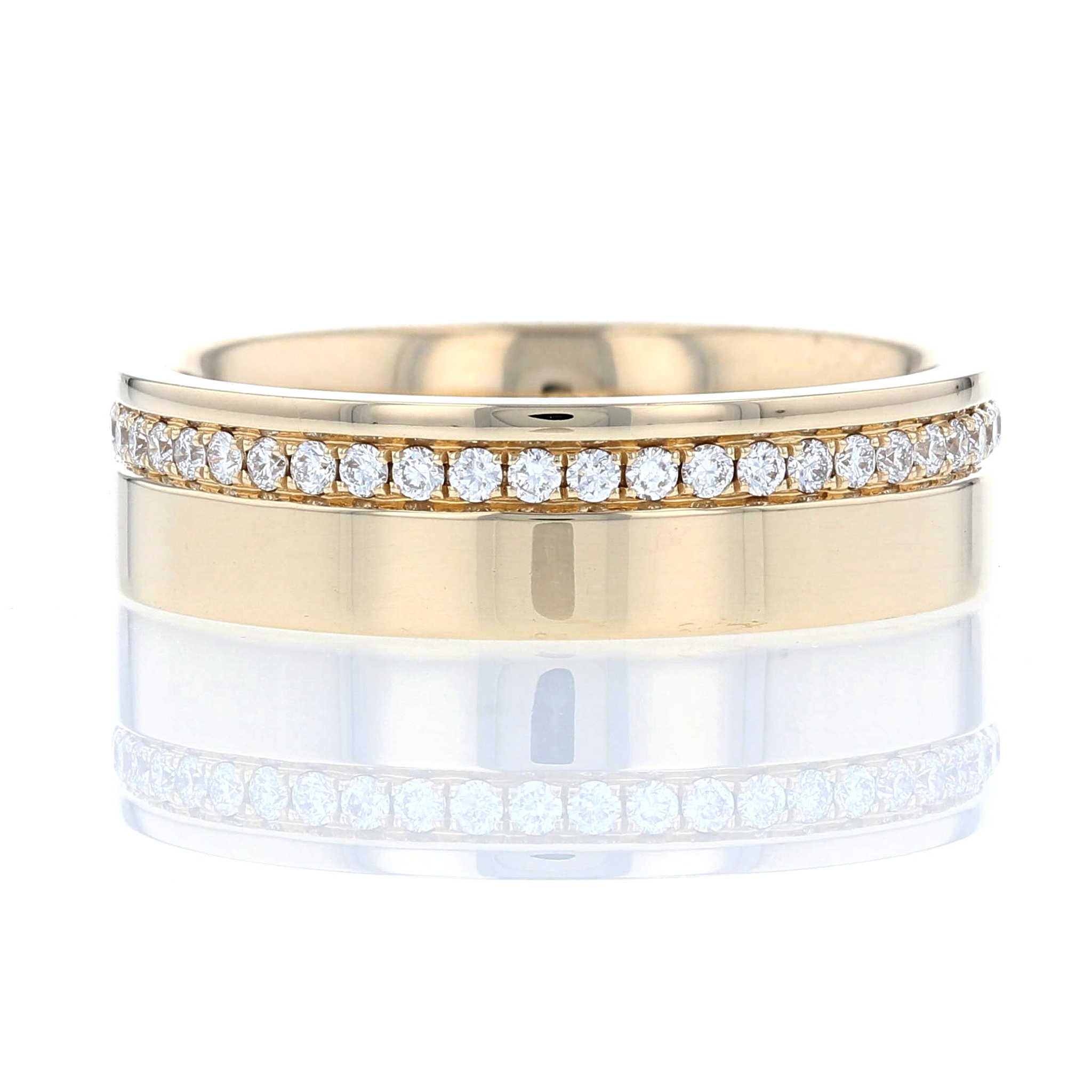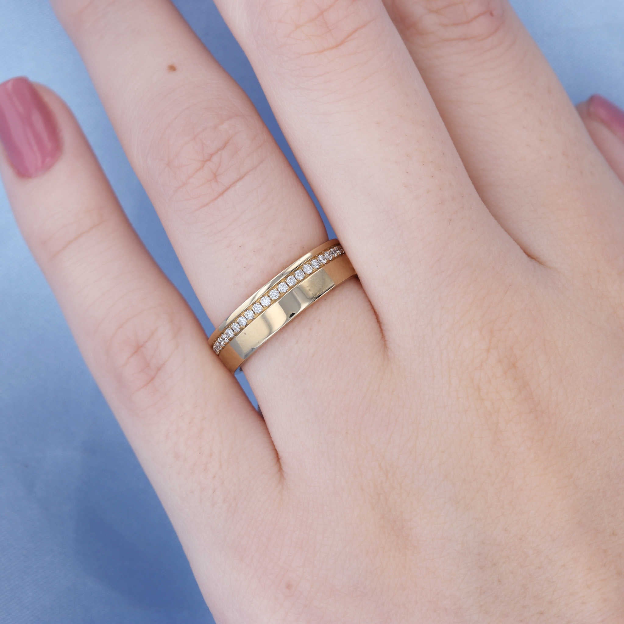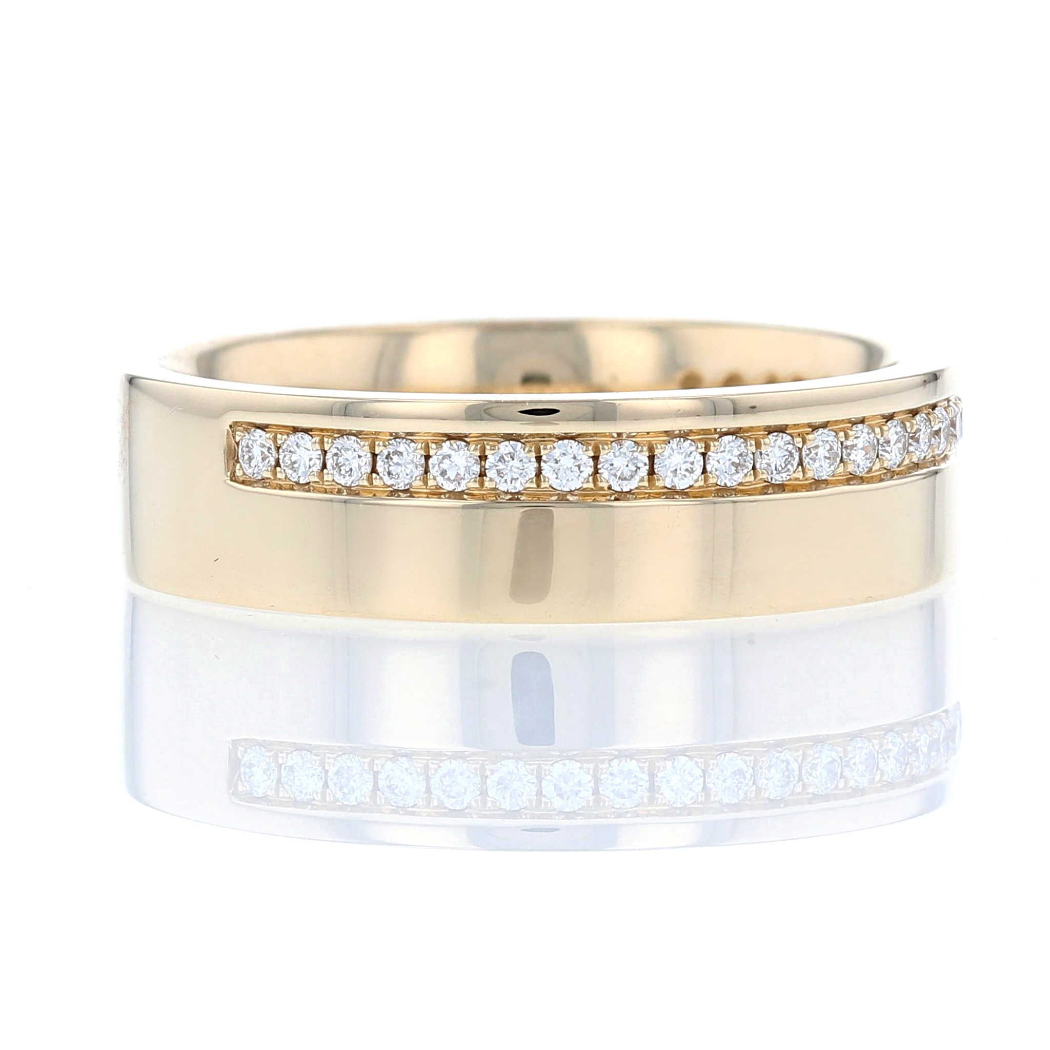 14k Yellow Gold 0.21 carat total weight Diamond Offset Stripe High Polished Band, Size 6.25. Band is approximately 5.4 mm.