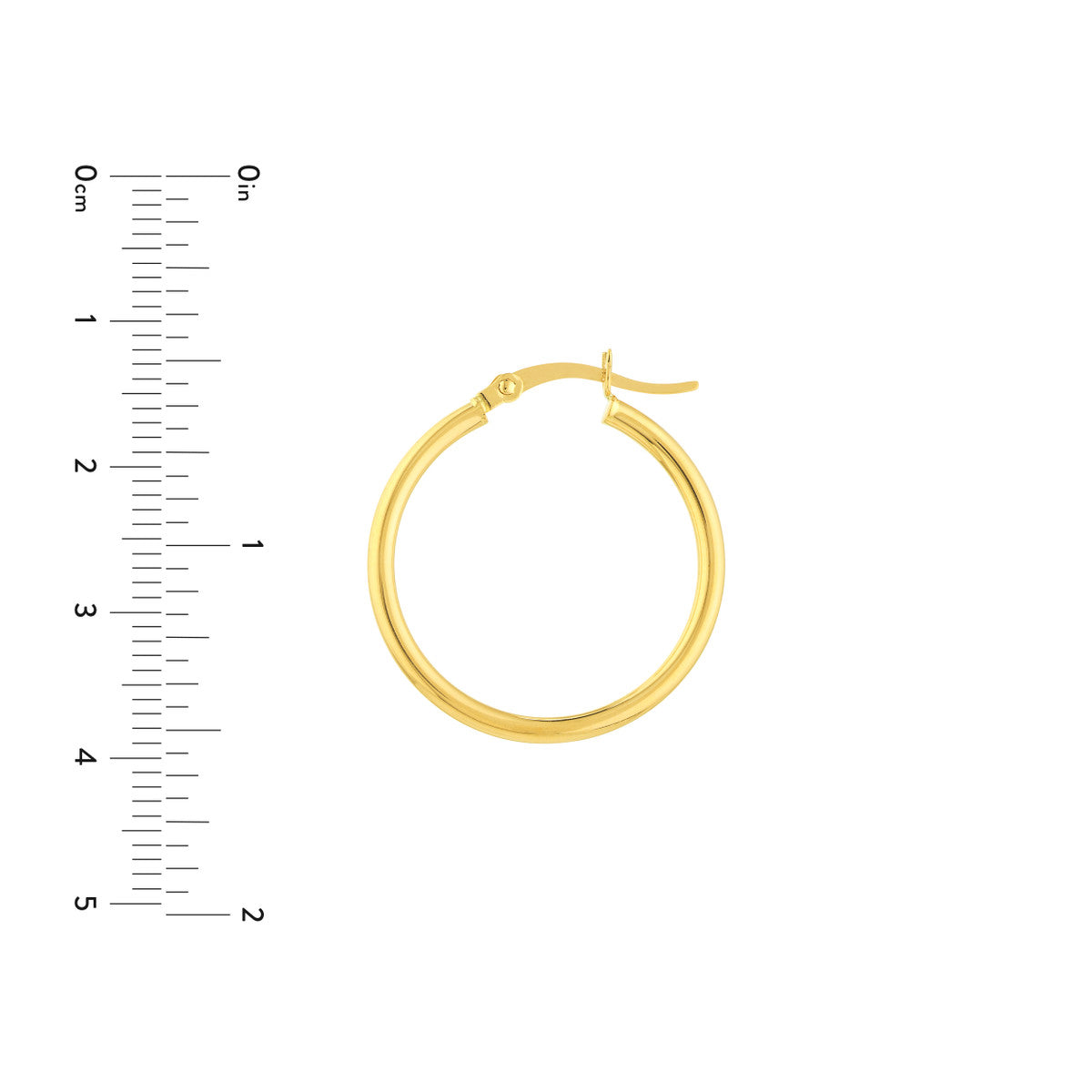 14k Yellow Gold 2 x 25 mm Round Tube Polished Hoop Earrings.